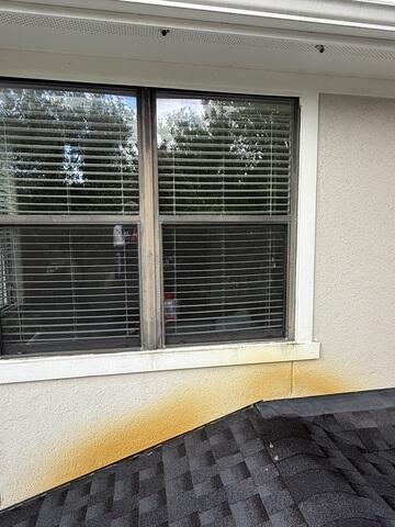 We removed some rust staining on the side of the house. The staining comes from the overflow pipes coming from the HVAC system. These rust stains are extremely tough to get out. One of five solutions that we manufacture is called Bright Stuff Rust Remover. Our rust remover cuts through rust stains like a hot knife through butter. Don't take our word for it, see for yourself. Give us a call for a free quote!